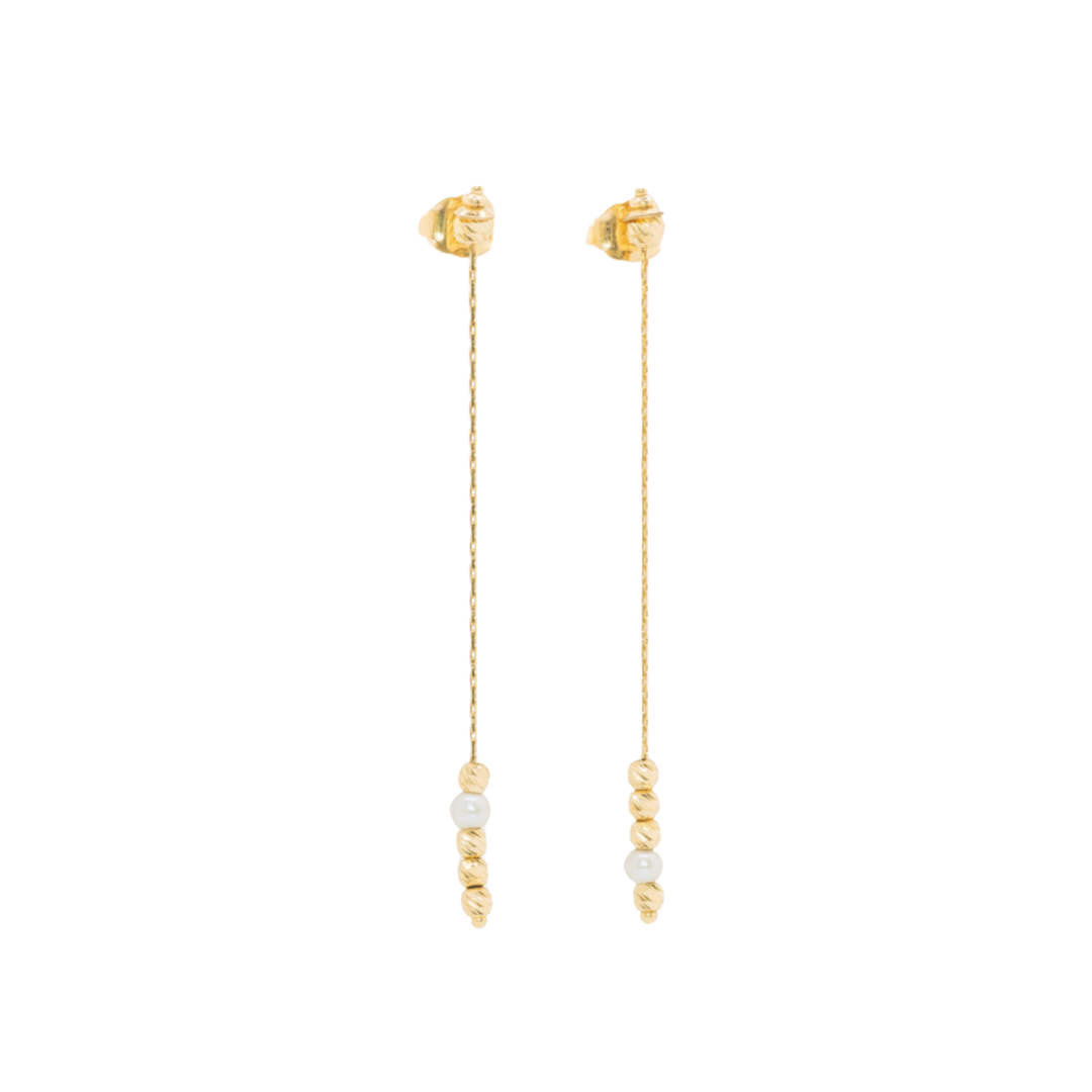 Each piece is meticulously designed and handcrafted with laser-cut, solid 18-karat gold beads and cultured freshwater pearls. We do not use any fillers, gold plating, or dipping.