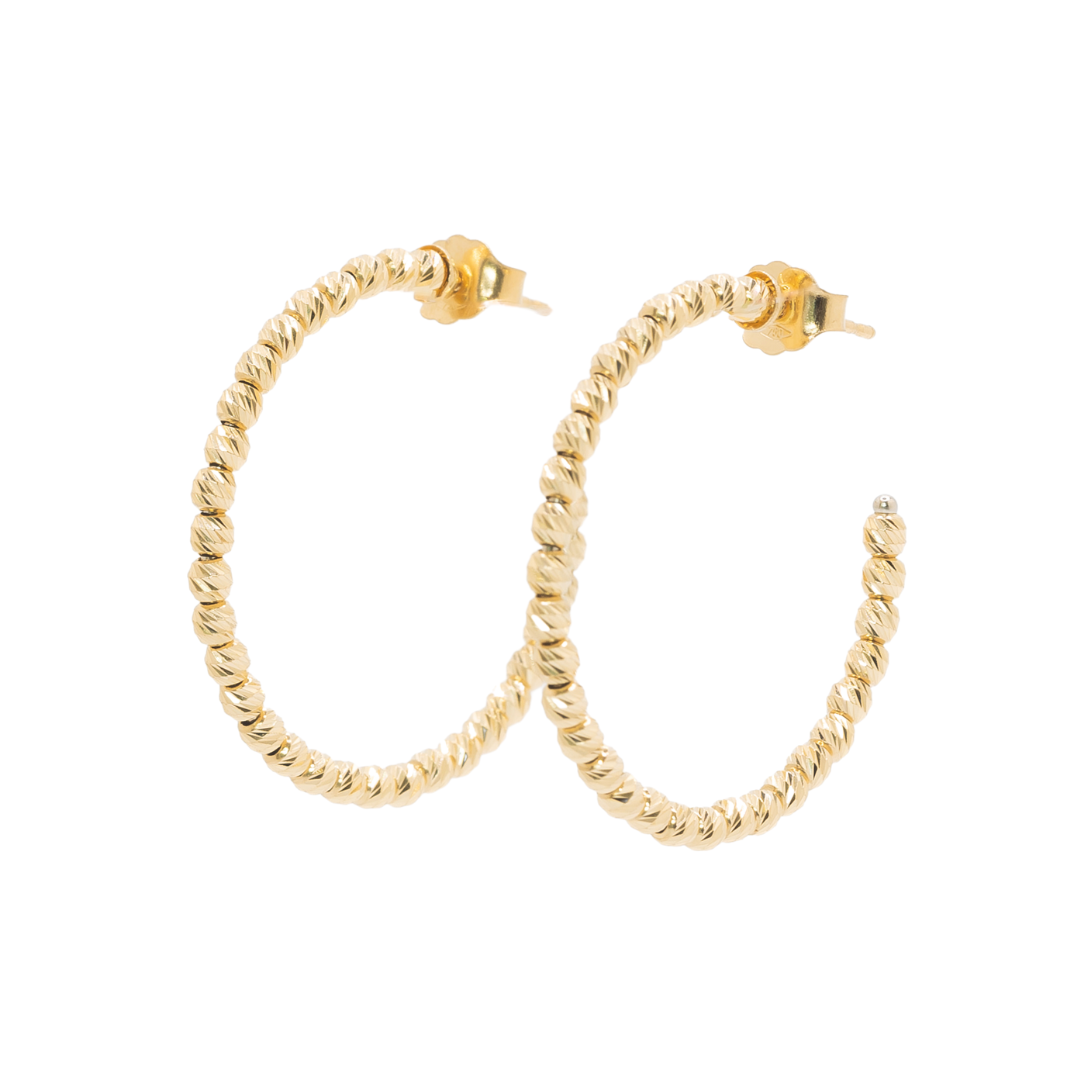 Each piece is meticulously designed and handcrafted with laser-cut, solid 18-karat gold beads. We do not use any fillers, gold plating, or dipping.