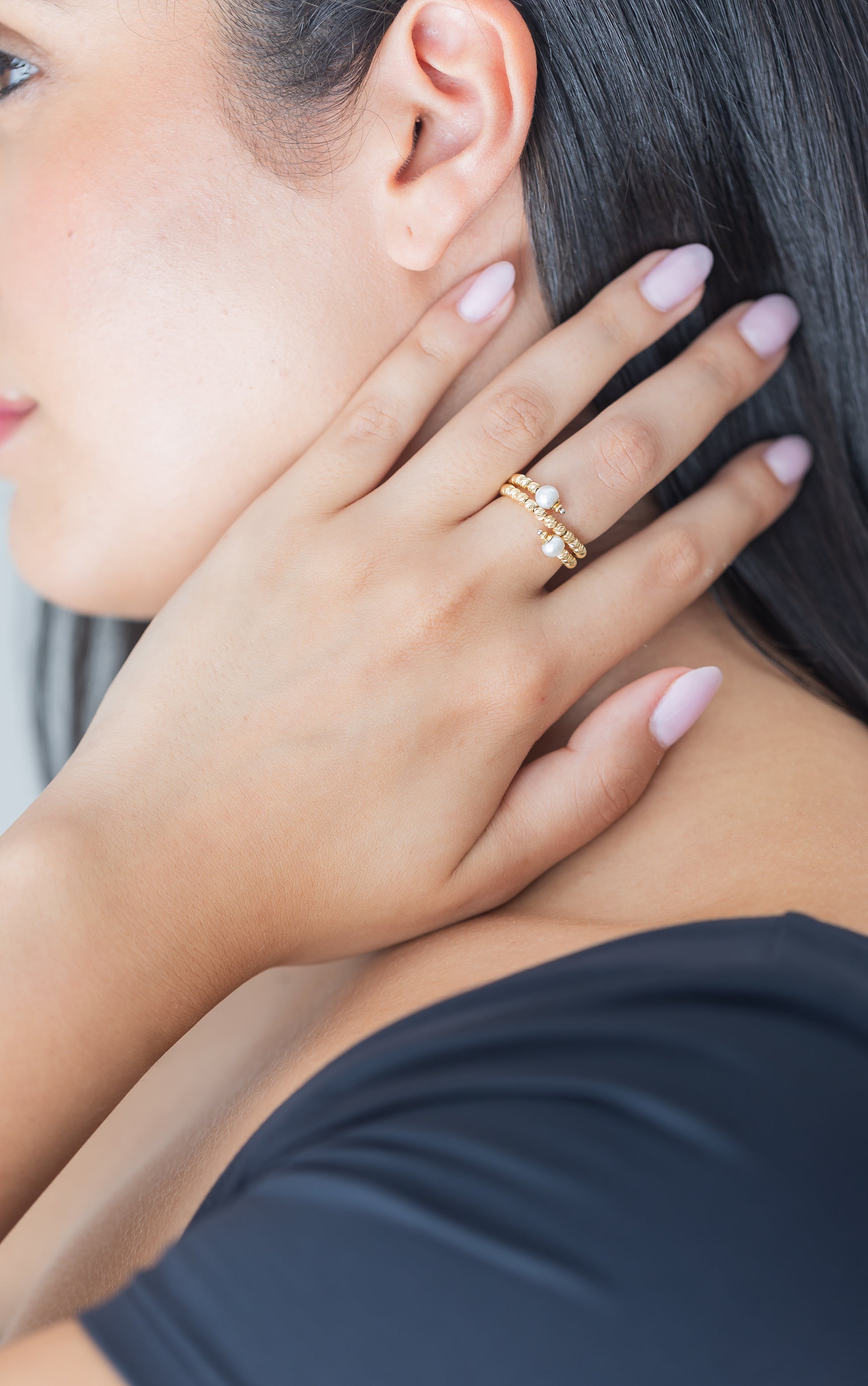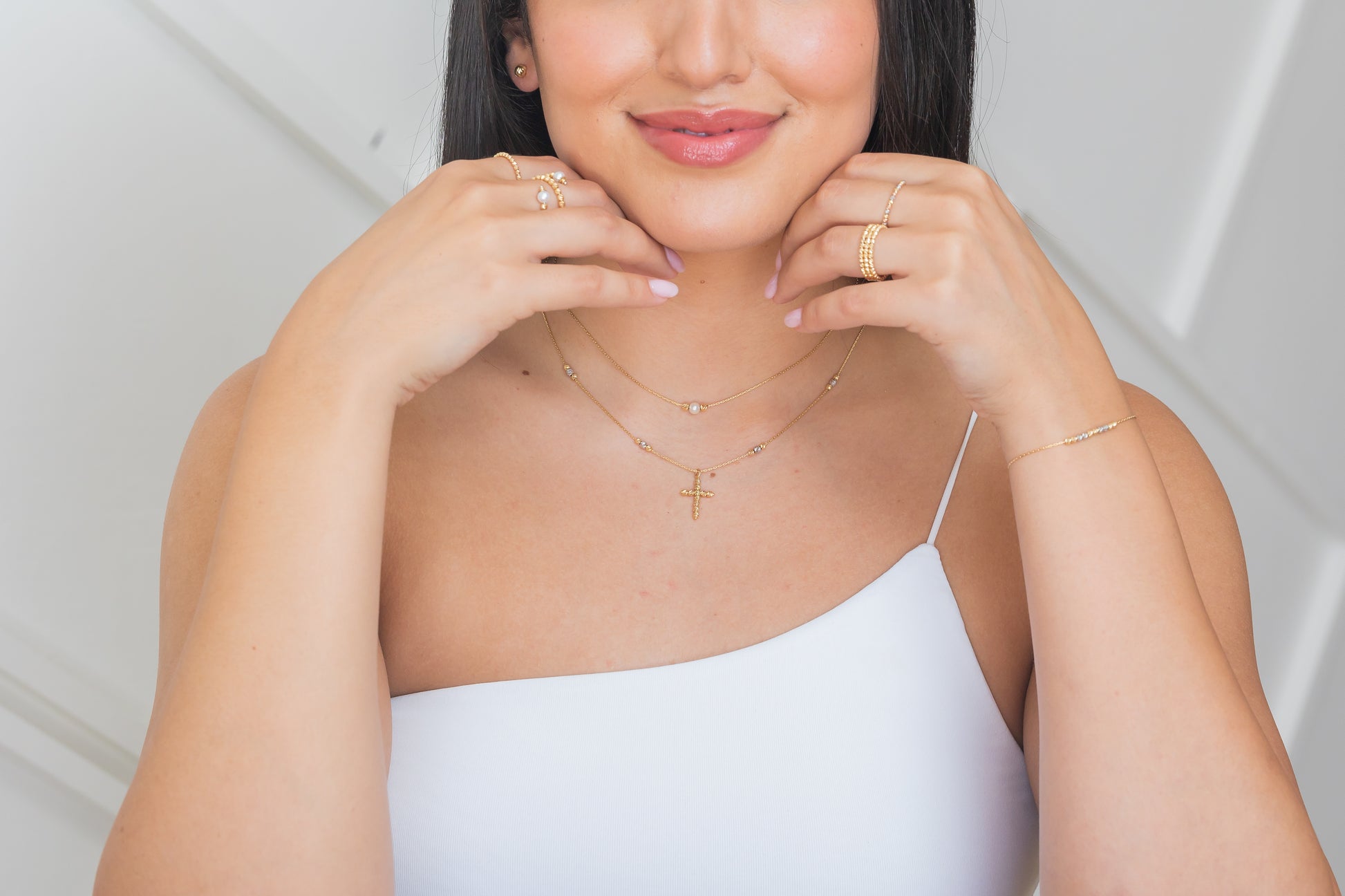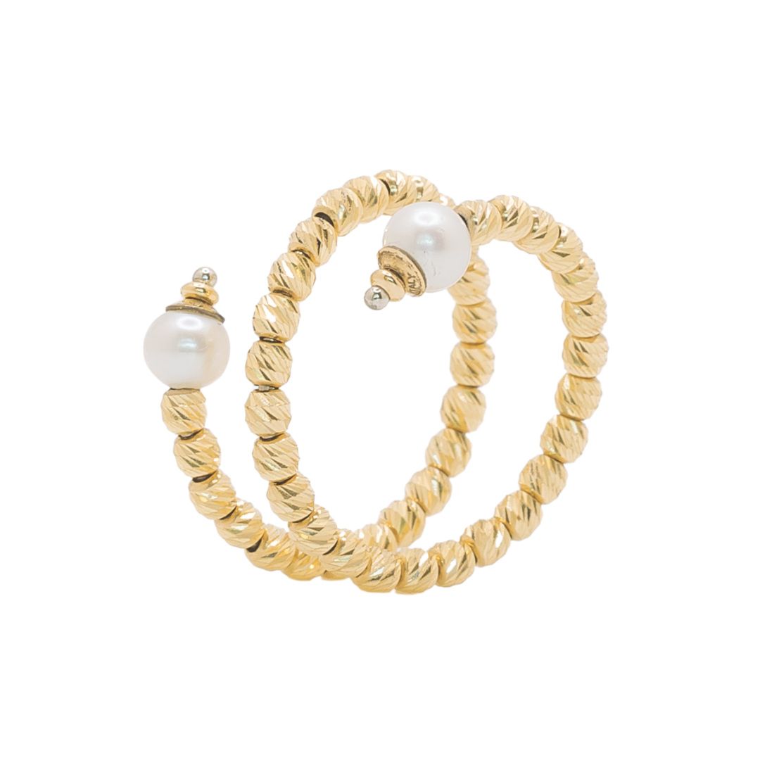 Each piece is meticulously designed and handcrafted with laser-cut, solid 18-karat gold beads and cultured freshwater pearls. We do not use any fillers, gold plating, or dipping.