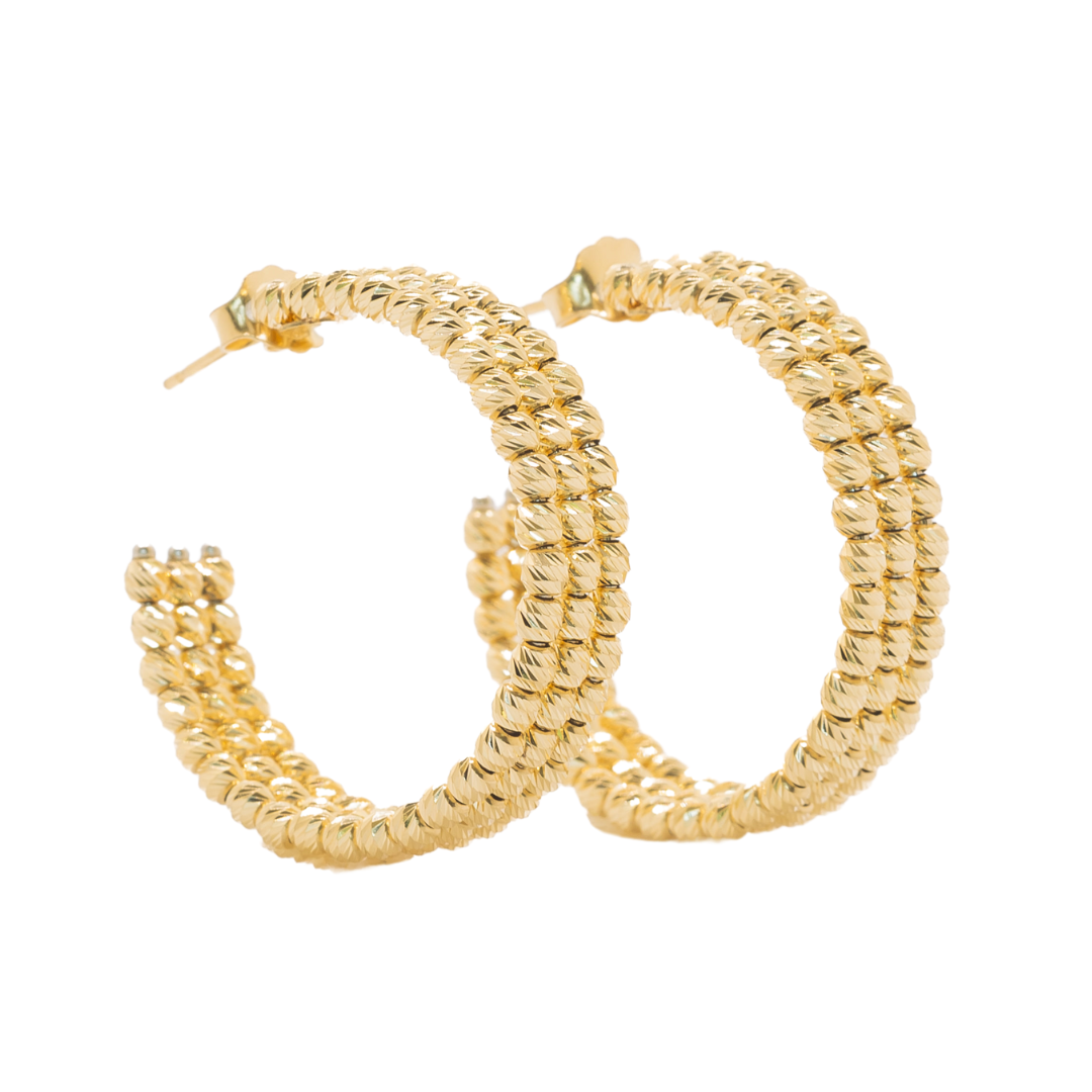 Each piece is meticulously designed and handcrafted with laser-cut, solid 18-karat gold beads. We do not use any fillers, gold plating, or dipping.