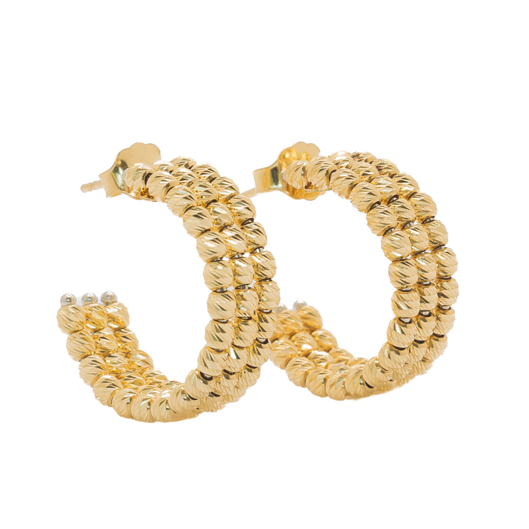 Each piece is meticulously designed and handcrafted with laser-cut, solid 18-karat gold beads. We do not use any fillers, gold plating, or dipping.