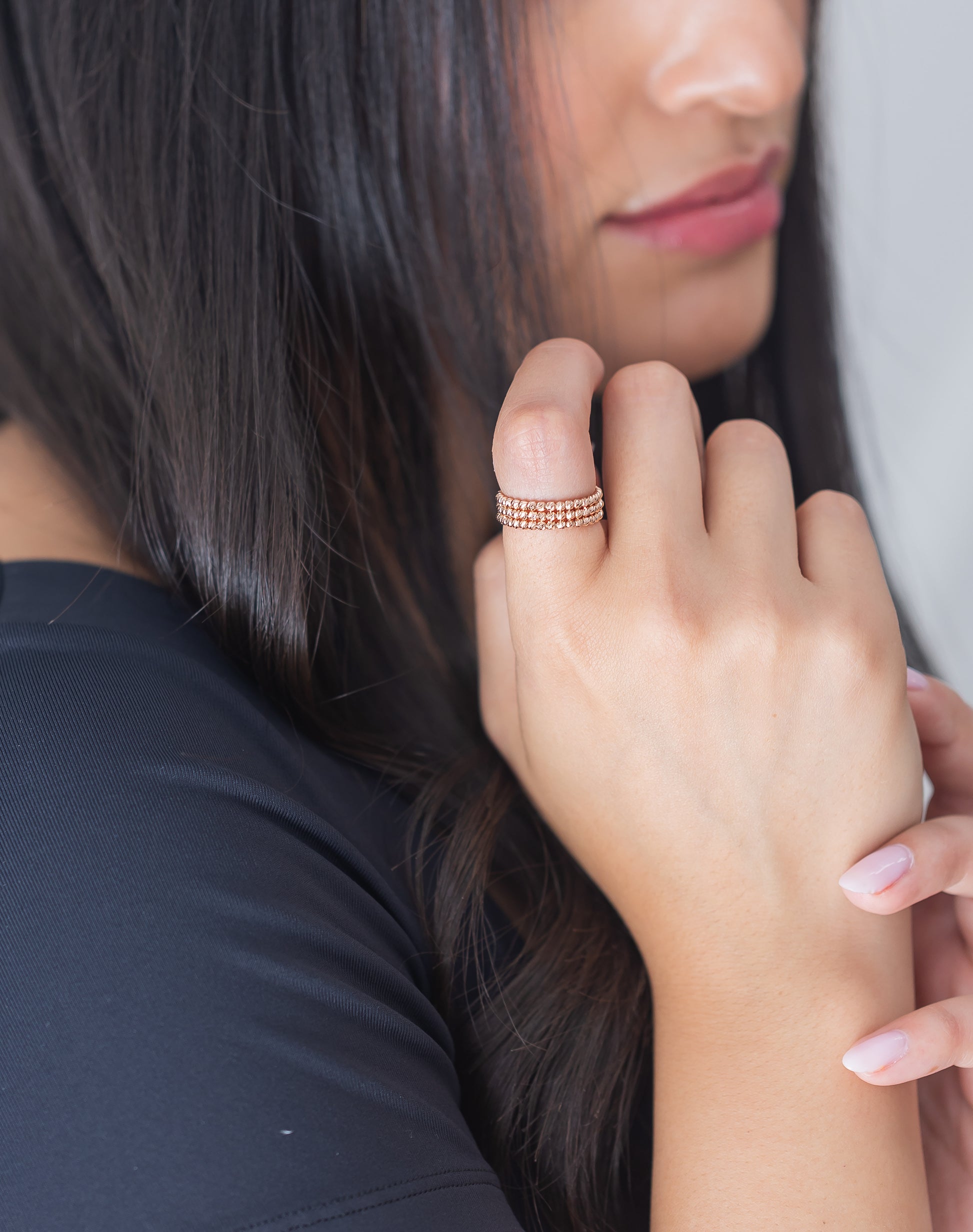 Each piece is meticulously designed and handcrafted with laser-cut, solid 18-karat gold beads. We do not use any fillers, gold plating, or dipping.