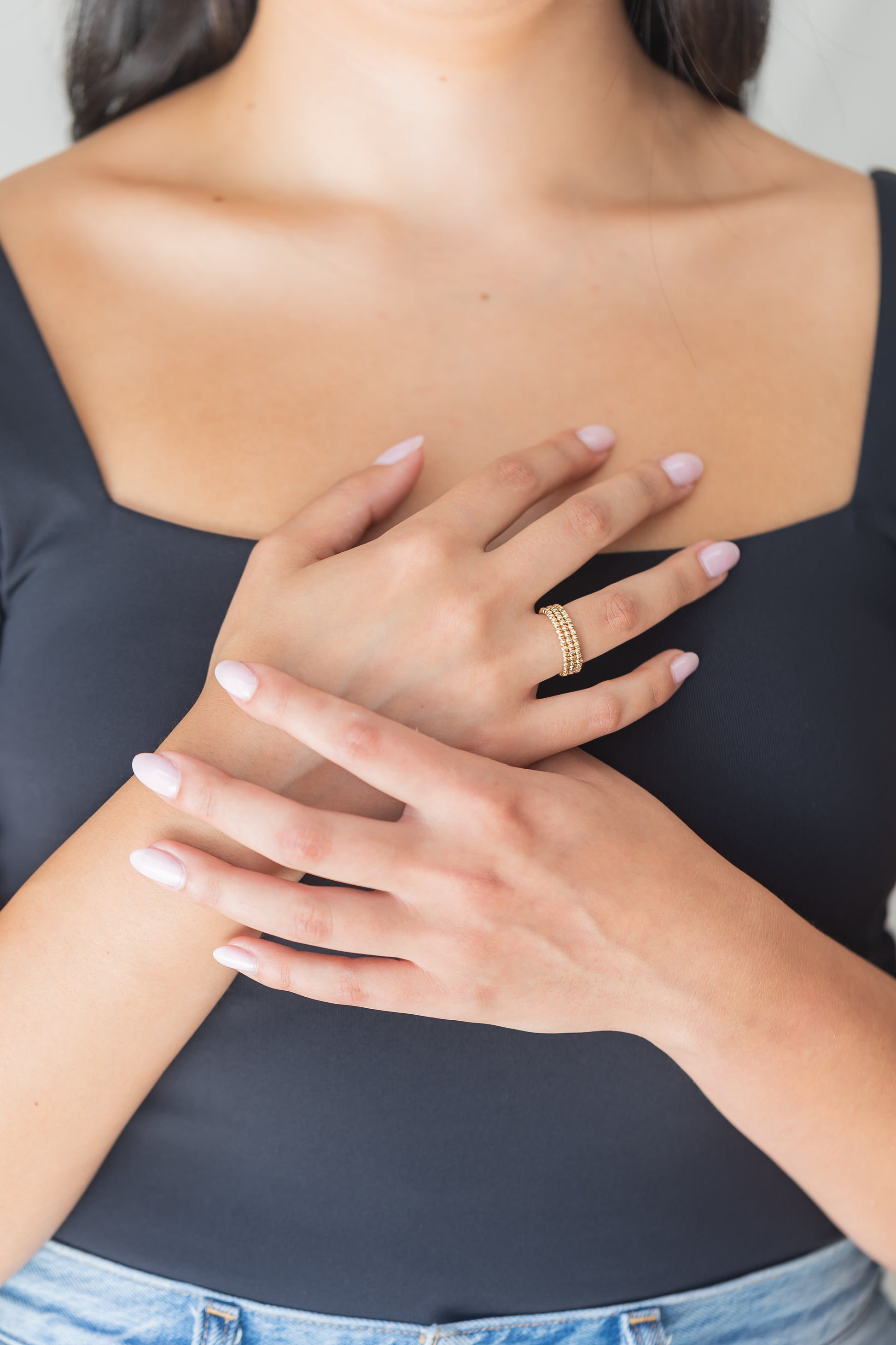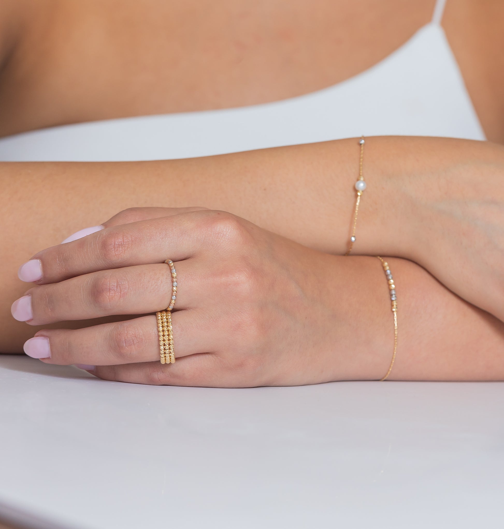 Each piece is meticulously designed and handcrafted with laser-cut, solid 18-karat gold beads. We do not use any fillers, gold plating, or dipping.